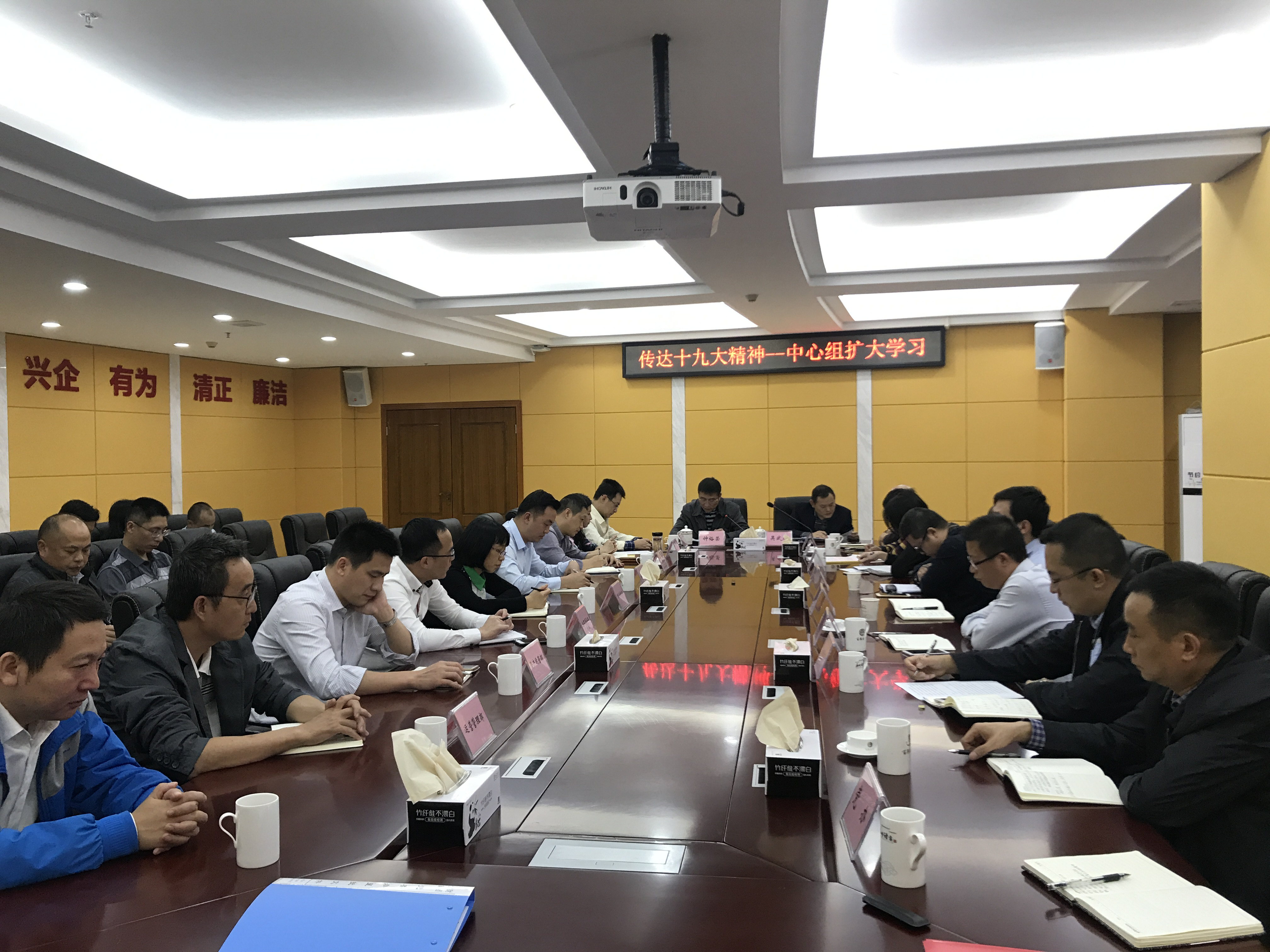 11月6日下午,金財集團(tuán)黨委書記鐘裕榮主持召開中心組擴(kuò)大學(xué)習(xí),召集集團(tuán)中層以上管理人員,集中傳達(dá)學(xué)習(xí)黨的十九大會議精神,研究貫徹落實十九大精神的實施意見。會上,鐘裕榮同志傳達(dá)了黨的十九大會議精神,要求大家深入學(xué)習(xí)十九大精神,一要深刻認(rèn)識黨的十九大的重大意義和時代影響。黨的十九大是在兩個一百年的歷史交匯期召開的一次舉旗定向、凝心聚力的大會,是在全面建成小康社會決勝階段、中國特色社會主義進(jìn)入新時代的關(guān)鍵時期召開的一次十分重要的大會,是一次不忘初心、牢記使命、高舉旗幟、團(tuán)結(jié)奮進(jìn)的大會,對凝聚黨心軍心民心、推動黨和國家事業(yè)發(fā)展具有十分重大的意義。二要準(zhǔn)確領(lǐng)會黨的十九大的精神實質(zhì)和深刻內(nèi)涵。首先要認(rèn)真研讀黨的十九大文件,原原本本學(xué)習(xí)黨的十九大報告和黨章,學(xué)習(xí)習(xí)近平同志在黨的十九屆一中全會上的重要講話精神,把握大會提出的重大理論觀點、重大戰(zhàn)略思想和重大工作部署。三要結(jié)合實際學(xué)習(xí)貫徹十九大精神,全力推進(jìn)集團(tuán)公司改革發(fā)展上新臺階。㈠高度重視,深入學(xué)習(xí),要把學(xué)習(xí)貫徹黨的十九大精神作為集團(tuán)當(dāng)前和今后一個時期的首要政治任務(wù);㈡大力營造學(xué)習(xí)貫徹十九大精神的濃厚氛圍,突出反映基層員工通過學(xué)習(xí)煥發(fā)出來的良好精神風(fēng)貌和立足崗位、努力工作;㈢把學(xué)習(xí)貫徹十九大精神與推進(jìn)集團(tuán)改革發(fā)展結(jié)合起來、與實現(xiàn)集團(tuán)年度經(jīng)營目標(biāo)任務(wù)結(jié)合起來、與謀劃好明年的工作及今后的長遠(yuǎn)發(fā)展結(jié)合起來,將企業(yè)改革發(fā)展融入全面建設(shè)社會主義現(xiàn)代化國家新征程,始終保持與黨和國家的發(fā)展同頻共振,充分發(fā)揮國有企業(yè)在在建設(shè)現(xiàn)代化經(jīng)濟(jì)體系中的作用,促進(jìn)國有資產(chǎn)保值增值,推動國有資本做強做優(yōu)做大。 ![]() ![]() |