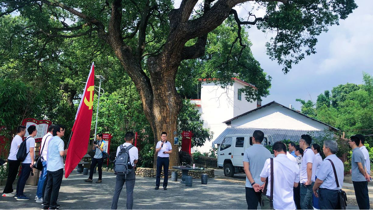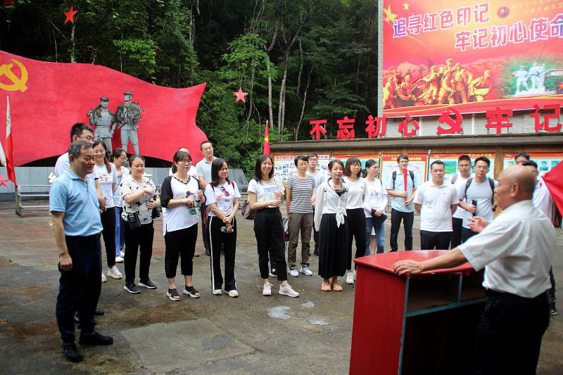 為紀(jì)念中國(guó)共產(chǎn)黨成立99周年,弘揚(yáng)新時(shí)代國(guó)企實(shí)干創(chuàng)新、團(tuán)結(jié)進(jìn)取的精神,進(jìn)一步激勵(lì)黨員不忘初心使命、矢志砥礪前行,7月3日,市金財(cái)集團(tuán)黨委組織全體黨員和入黨積極分子到樂昌龍王潭開展“七一”紅色黨建主題活動(dòng)。 。埻跆都t軍廣場(chǎng))上午,在作為創(chuàng)建社會(huì)主義新農(nóng)村示范村的和村里,大家見證了中國(guó)共產(chǎn)黨在實(shí)施鄉(xiāng)村振興戰(zhàn)略重要部署、統(tǒng)籌推進(jìn)貧困戶精準(zhǔn)幫扶和產(chǎn)業(yè)發(fā)展壯大等工作上取得的成就。在和村廣場(chǎng),全體黨員佩戴黨員徽章,面向鮮紅的黨旗,莊嚴(yán)地舉起右臂,重溫入黨誓詞,用鏗鏘有力的聲音表達(dá)對(duì)黨的忠誠(chéng)和為黨的事業(yè)奮斗終身的決心。 (重溫入黨誓詞) 。ú瘫峭局v黨課)下午,全體黨員來(lái)到龍王潭,參觀了紅軍雕塑、紅軍碑,重走長(zhǎng)征路,傾聽紅軍長(zhǎng)征故事,追尋紅軍長(zhǎng)征足跡,接受紅軍革命精神的熏陶。 。ㄔ吠局v黨課)通過(guò)此次活動(dòng),黨員們?cè)谔は容呑阚E和集團(tuán)領(lǐng)導(dǎo)講黨課、重溫黨的光輝歷史中,切身體會(huì)到偉大的紅軍長(zhǎng)征精神是鼓舞和激勵(lì)中國(guó)人民不斷攻堅(jiān)克難,激發(fā)干事創(chuàng)業(yè)的動(dòng)力和熱情。同志們紛紛表示,將始終不忘初心、牢記使命,堅(jiān)定信仰信念,強(qiáng)化責(zé)任擔(dān)當(dāng),立足本職工作,矢志砥礪奮斗,為推進(jìn)我市服務(wù)大灣區(qū)、融入大灣區(qū),實(shí)現(xiàn)高質(zhì)量發(fā)展作出國(guó)有企業(yè)應(yīng)有的、積極的貢獻(xiàn),以優(yōu)異成績(jī)向建黨99周年獻(xiàn)禮! |