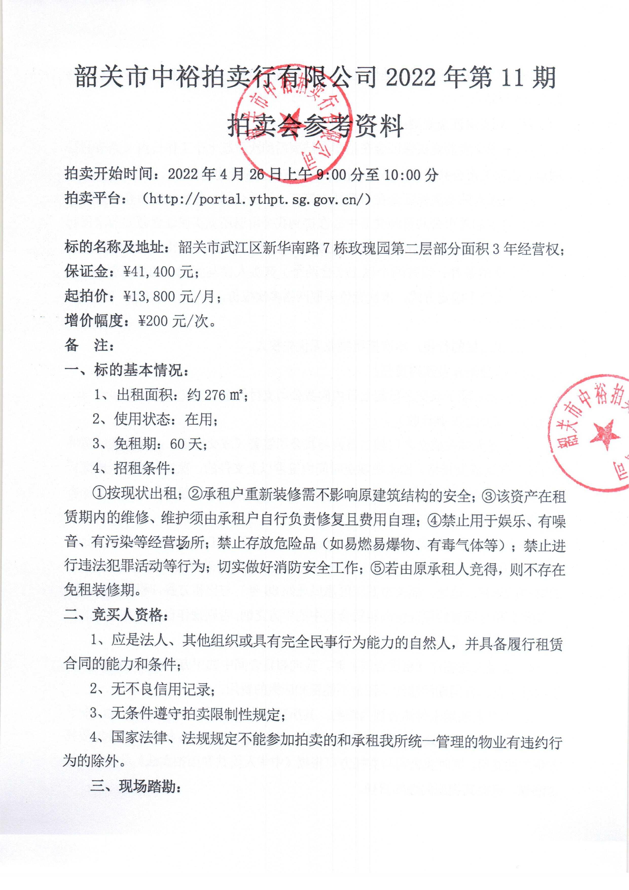 韶關(guān)市中裕拍賣行有限公司2022年第11期拍賣公告(項(xiàng)目編號(hào):CQ20220130)發(fā)布時(shí)間:2022-04-15 | 作者:陳耀英 | 點(diǎn)擊:0次