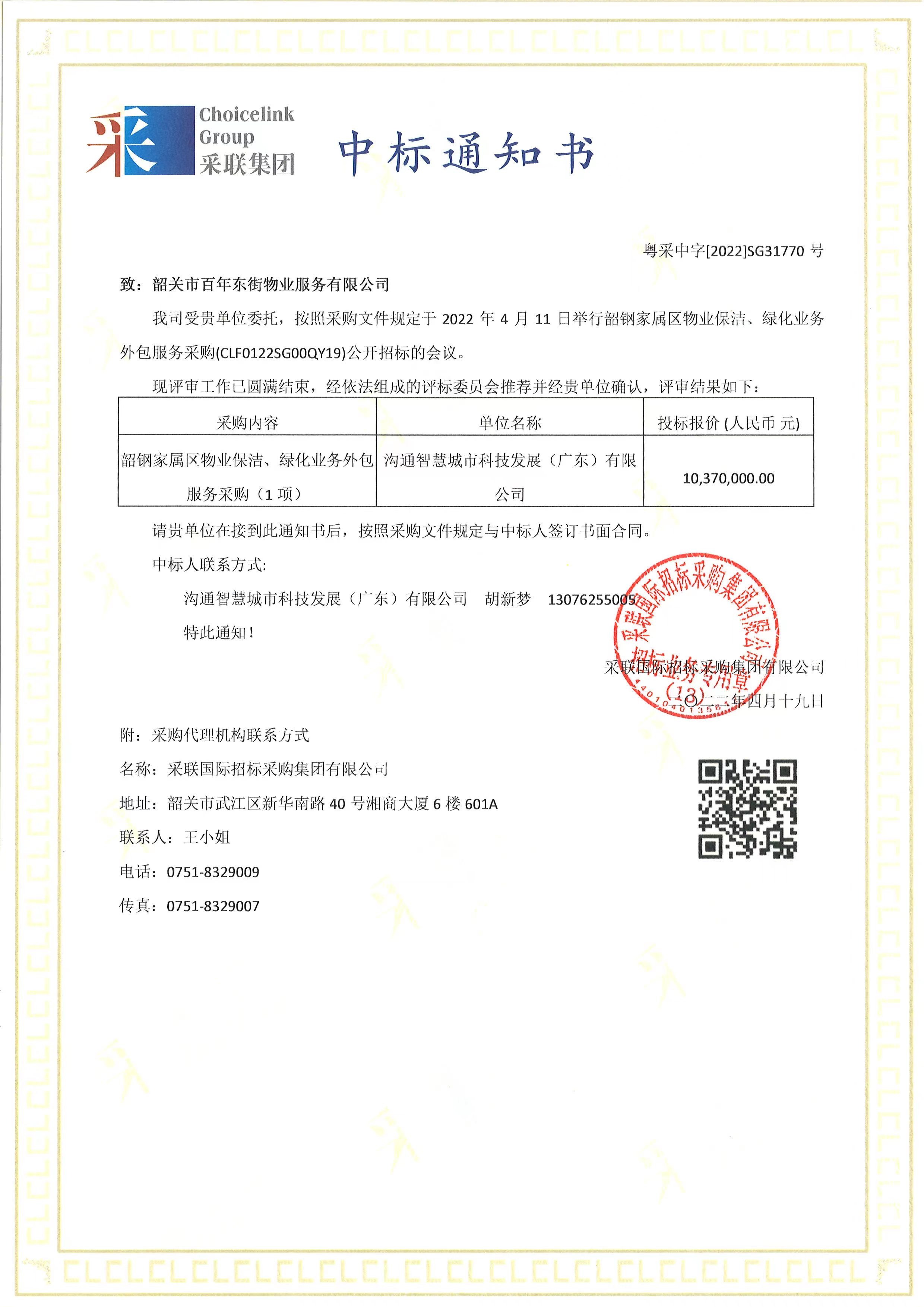 韶鋼家屬區(qū)物業(yè)保潔、綠化業(yè)務(wù)外包服務(wù)采購(gòu)中標(biāo)公告發(fā)布時(shí)間:2022-04-20 | 作者:徐桂權(quán) | 點(diǎn)擊:0次