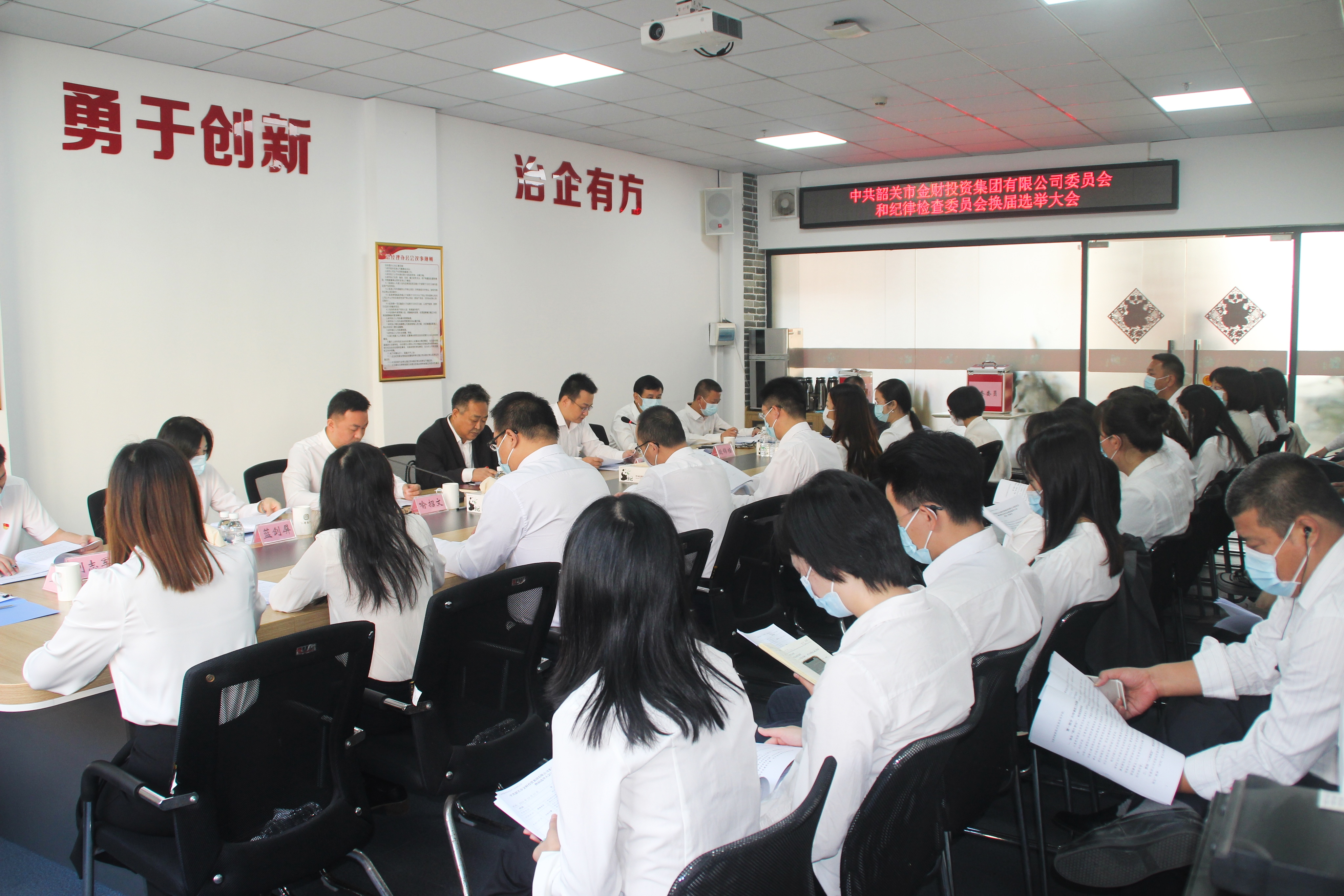 10月21日上午,中國(guó)共產(chǎn)黨韶關(guān)市金財(cái)投資集團(tuán)有限公司委員會(huì)和紀(jì)律檢查委員會(huì)換屆選舉大會(huì)勝利召開(kāi),圓滿完成大會(huì)各項(xiàng)議程。大會(huì)選舉產(chǎn)生了集團(tuán)新一屆“兩委”班子。市國(guó)資委黨委專(zhuān)職副書(shū)記李湘柱、市紀(jì)委監(jiān)委派駐市國(guó)資委紀(jì)檢監(jiān)察組一級(jí)主任科員張送軍、市國(guó)資委黨委辦公室主任王瑾一行三人蒞會(huì)指導(dǎo),集團(tuán)全體黨員參加了本次會(huì)議,會(huì)議由集團(tuán)黨委副書(shū)記、紀(jì)委書(shū)記喻招文主持。 大會(huì)在莊嚴(yán)的國(guó)歌聲中拉開(kāi)帷幕。會(huì)議首先聽(tīng)取并審議通過(guò)了由黨委書(shū)記、董事長(zhǎng)蔡秉智作出的集團(tuán)第一屆黨委工作報(bào)告。報(bào)告全面回顧了近年來(lái)集團(tuán)黨委的工作情況及取得的成績(jī),準(zhǔn)確客觀地總結(jié)了經(jīng)驗(yàn)和不足并提出了今后五年的工作建議。會(huì)議還審議通過(guò)了集團(tuán)第一屆紀(jì)委工作報(bào)告和黨費(fèi)收繳、使用及管理情況報(bào)告。 會(huì)上,全體黨員嚴(yán)格按照規(guī)定程序,采用差額選舉,以無(wú)記名投票方式選舉產(chǎn)生了中共韶關(guān)市金財(cái)投資集團(tuán)有限公司委員會(huì)和紀(jì)律檢查委員會(huì)新一屆領(lǐng)導(dǎo)班子。黨委領(lǐng)導(dǎo)班子成員分別是:蔡秉智(黨委書(shū)記)、喻招文(黨委副書(shū)記)、藍(lán)劍屏、黃國(guó)興、劉志軍;紀(jì)委班子分別是:喻招文(紀(jì)委書(shū)記)、黃雨先、鄭惠娟。 集團(tuán)黨委書(shū)記、董事長(zhǎng)蔡秉智代表新一屆黨委領(lǐng)導(dǎo)班子作表態(tài)發(fā)言,他表示,集團(tuán)新一屆黨委領(lǐng)導(dǎo)班子要在市委、市政府和市國(guó)資委的領(lǐng)導(dǎo)下,著重做好三方面工作:一要講政治,管大局,促進(jìn)黨建工作與經(jīng)營(yíng)管理同頻共振,以高質(zhì)量黨建引領(lǐng)集團(tuán)高質(zhì)量發(fā)展;二要長(zhǎng)本領(lǐng),提能力,不斷提升集團(tuán)經(jīng)營(yíng)管理水平,強(qiáng)化集團(tuán)競(jìng)爭(zhēng)力和抗風(fēng)險(xiǎn)能力;三要勇?lián)?dāng),善作為,直面集團(tuán)經(jīng)營(yíng)發(fā)展過(guò)程中的難題和挑戰(zhàn),搶抓機(jī)遇,迎難而上,爭(zhēng)取各項(xiàng)任務(wù)目標(biāo)順利完成。 會(huì)議最后,李湘柱代表市國(guó)資委黨委向集團(tuán)換屆選舉大會(huì)的圓滿召開(kāi)以及對(duì)成功當(dāng)選的新一屆“兩委”班子成員表示熱烈祝賀,并對(duì)近年來(lái)集團(tuán)黨委、紀(jì)委的主要工作成績(jī)給予了的肯定,同時(shí)還對(duì)新一屆“兩委”班子提出四點(diǎn)要求:一是要旗幟鮮明講政治,圍繞企業(yè)經(jīng)營(yíng)目標(biāo)與定位,推動(dòng)黨建工作與經(jīng)營(yíng)業(yè)務(wù)深度融合;二是要講學(xué)習(xí),講團(tuán)結(jié),講擔(dān)當(dāng),帶頭樹(shù)立良好工作作風(fēng),始終做到身先士卒,率先垂范;三是要深化改革,大膽創(chuàng)新,以人事干部制度改革為突破口,實(shí)現(xiàn)干部能上能下,收入能增能減;四是要持之以恒推進(jìn)反腐倡廉,堅(jiān)守廉潔底線,履行一崗雙責(zé),將廉潔文化融入企業(yè)文化之中。大會(huì)在雄壯激昂的《國(guó)際歌》聲中勝利閉幕。 |